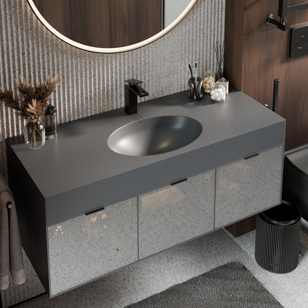 Bancada de Banheiro com Cuba Esculpida Oval Oasis - Steel Gray