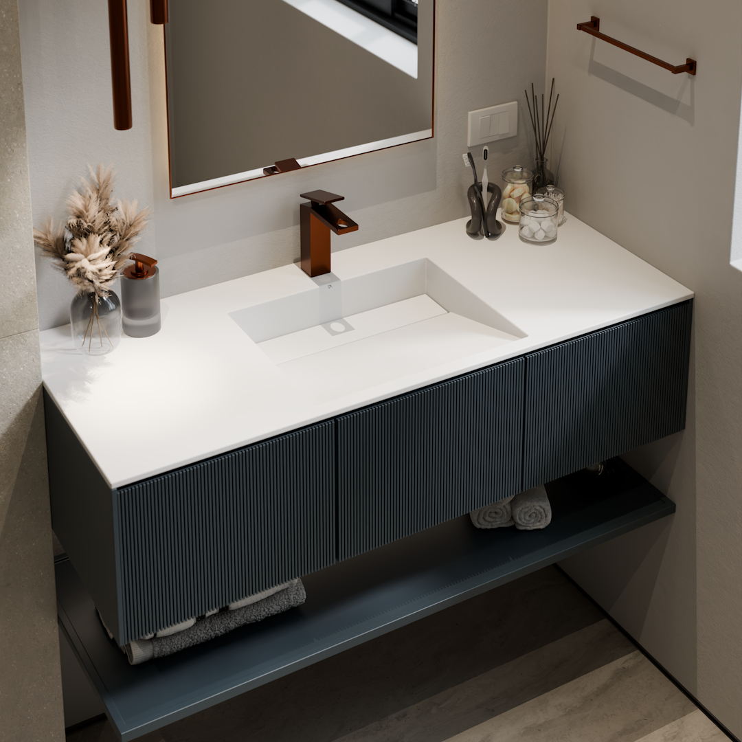 A Bancada de Banheiro Prisma Slim da Don Artesano é a peça central para um banheiro de alto design, unindo praticidade e funcionalidade. Com seu design retangular e material inovador, ela é sinônimo de luxo, durabilidade e facilidade na limpeza. Suave ao toque e com acabamento impecável, ela transforma qualquer ambiente em um espaço exclusivo e refinado.
