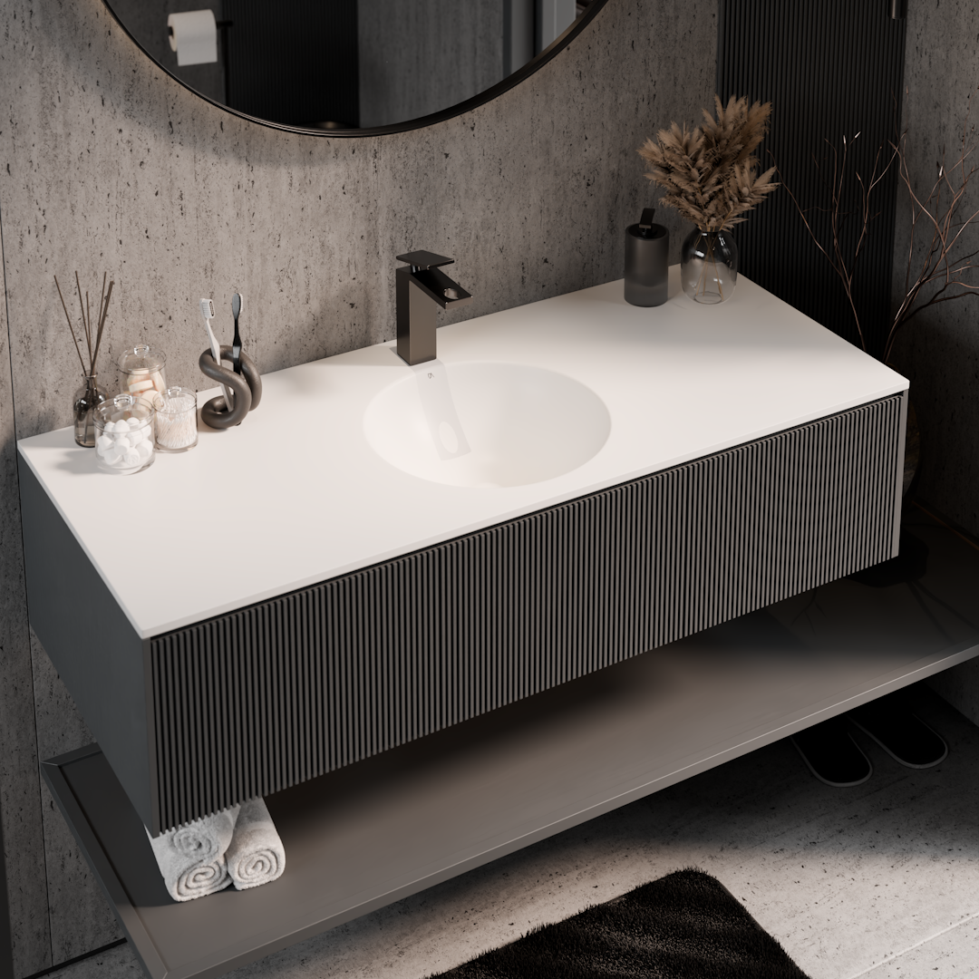 Conheça a Bancada de Banheiro Slim Cristal da Don Artesano. União entre a pureza visual da cuba esculpida e a tecnologia SSM, esta peça é a escolha definitiva para quem busca um ambiente moderno, higiênico e visualmente impactante.