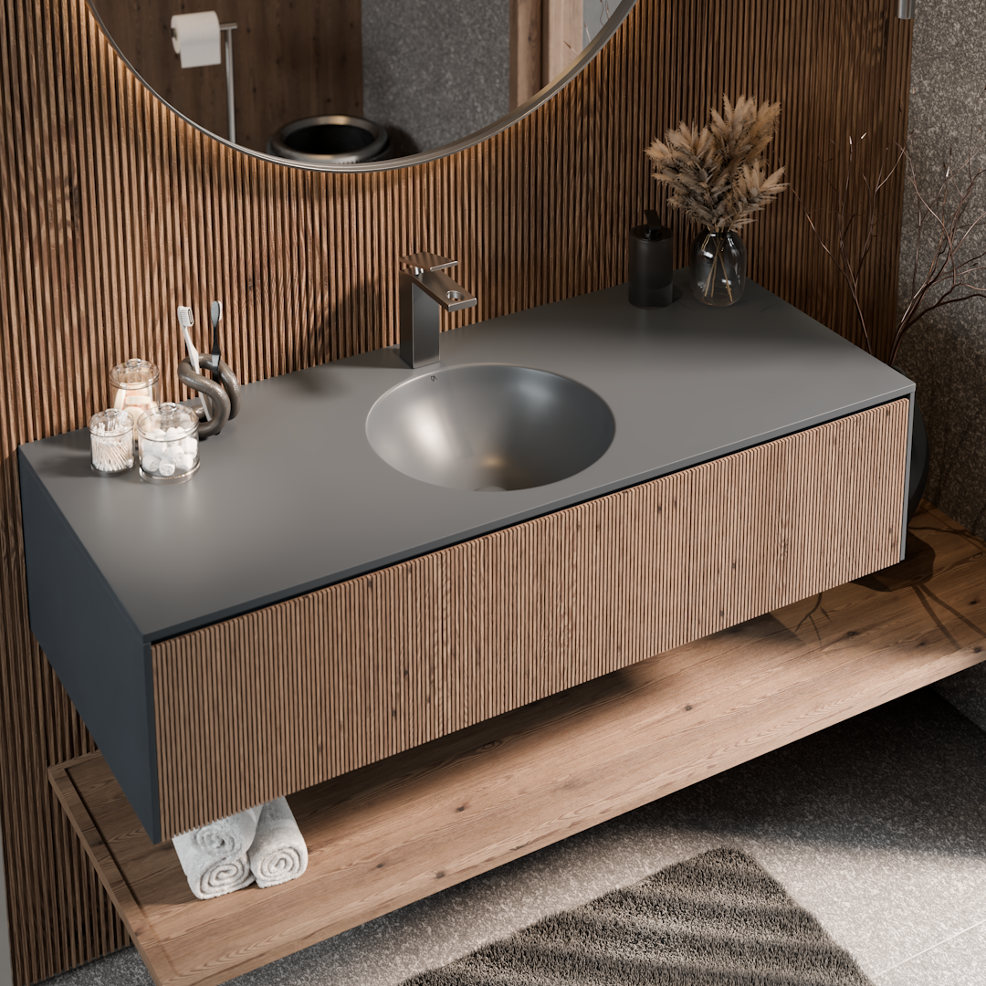 Bancada de Banheiro Slim com Cuba Esculpida Redonda Cristal - Steel Gray