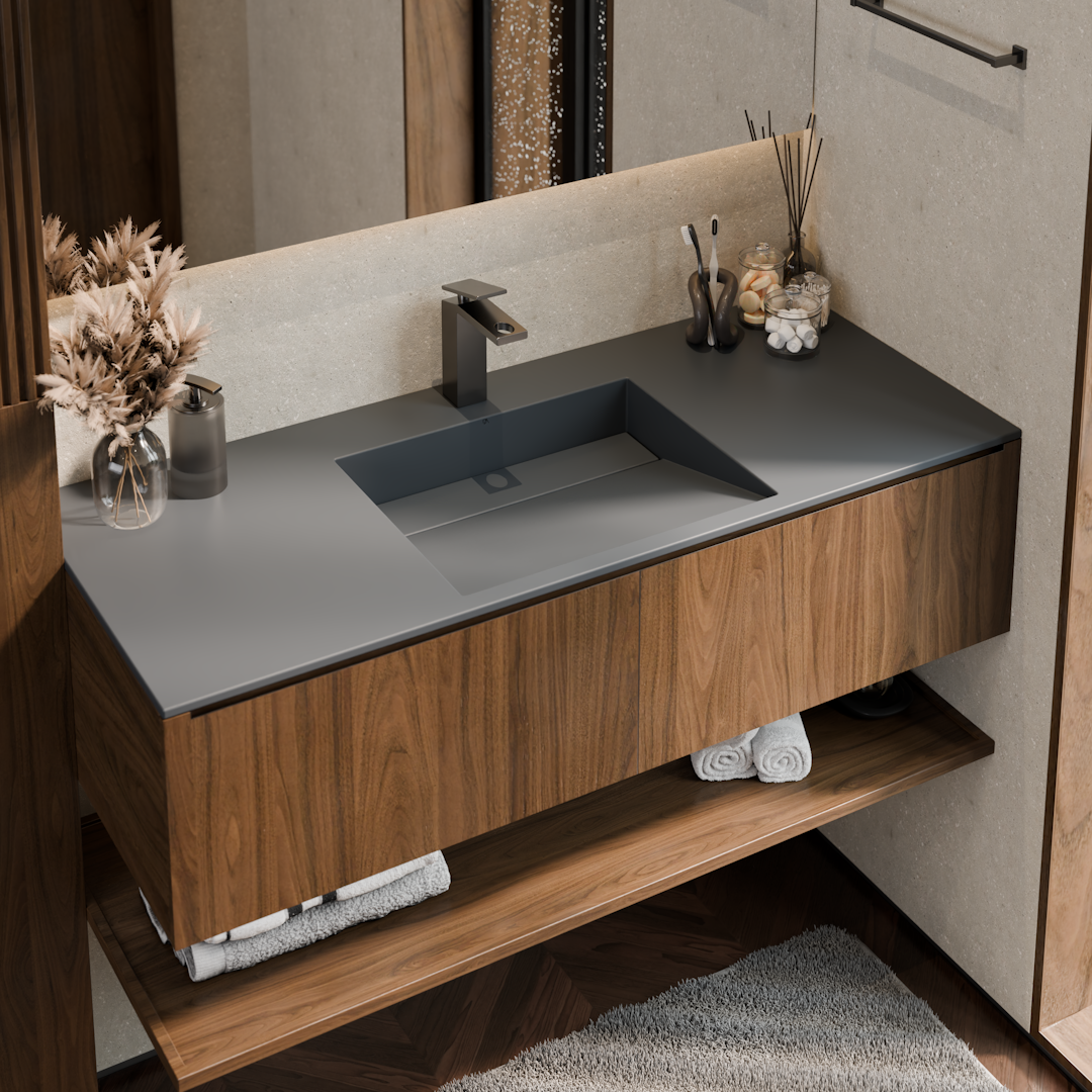A Bancada de Banheiro Prisma Slim da Don Artesano é a peça central para um banheiro de alto design, unindo praticidade e funcionalidade. Com seu design retangular e material inovador, ela é sinônimo de luxo, durabilidade e facilidade na limpeza. Suave ao toque e com acabamento impecável, ela transforma qualquer ambiente em um espaço exclusivo e refinado.