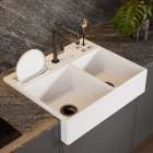 A Cuba Farm Sink Com Calha Gourmet da Don Artesano é a opção mais sofisticada e prática para a sua cozinha! Feita à mão em Superfície Sólida Mineral, material atóxico e não poroso, é resistente à abrasão e não mancha, além de impedir a proliferação de microrganismos.