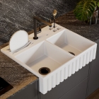 A Cuba Farm Sink Com Calha Gourmet da Don Artesano é a opção mais sofisticada e prática para a sua cozinha! Feita à mão em Superfície Sólida Mineral, material atóxico e não poroso, é resistente à abrasão e não mancha, além de impedir a proliferação de microrganismos.